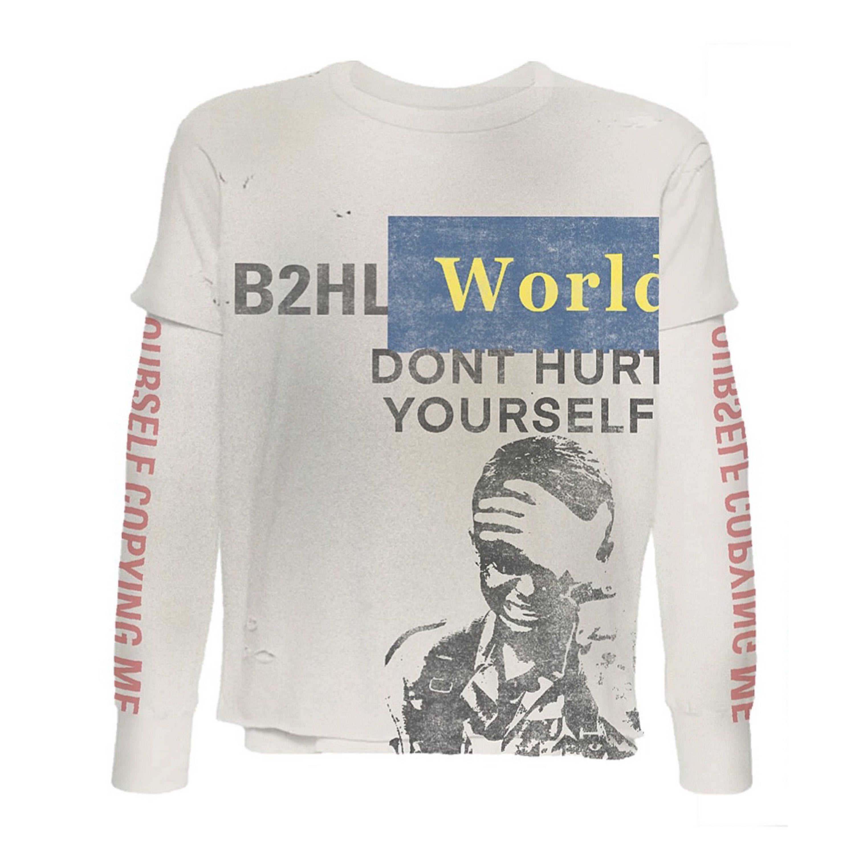 B2HL "DONT HURT YOURSELF" DOUBLE LAYER T-SHIRT - TAINT WHITE